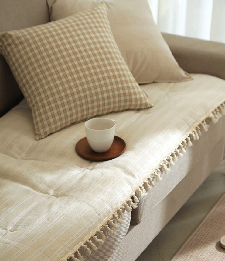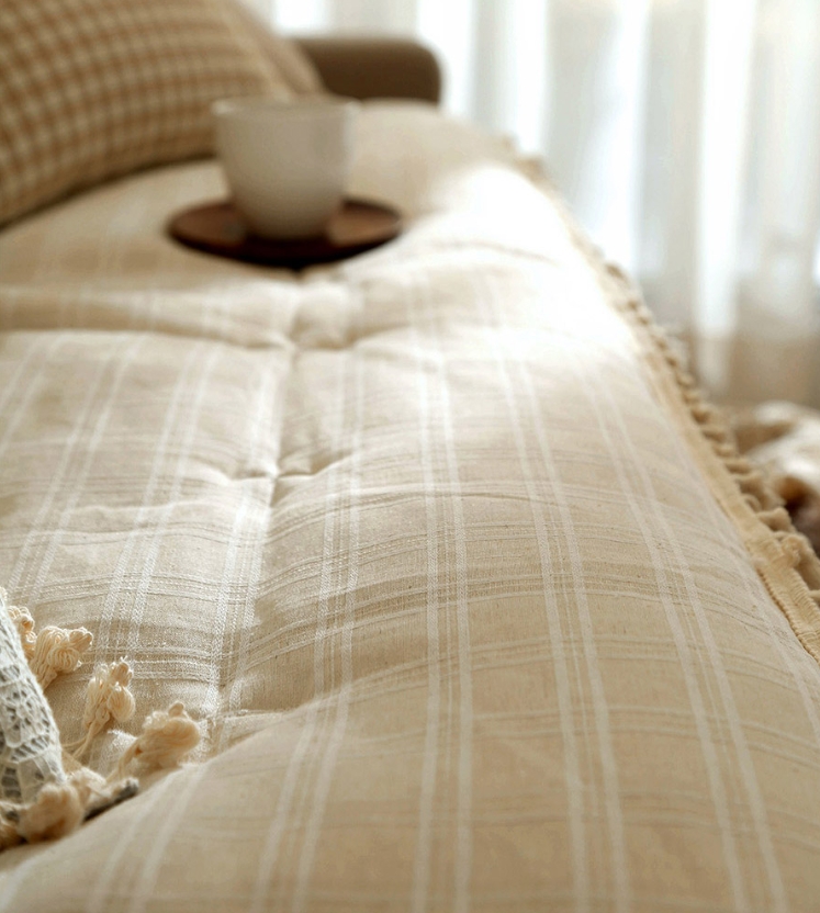 韓國 居家|法式自然小流蘇格紋亞麻手工縫製沙發墊|合法商家開立發票×奶油韓國代購×全館分期0利率