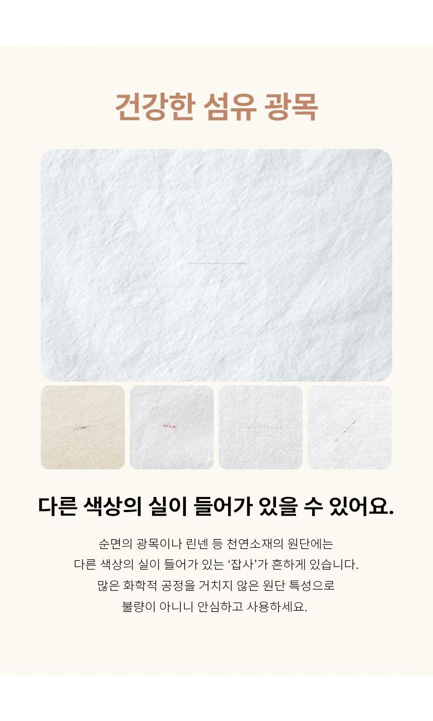 ●棉、麻、絲 等天然布料通常含有添加劑,導致紗線顏色改變。但此款枕套因為未經過太多化學處理,因此枕套可能會含有微微的彩色線,因此並非缺陷,請放心使用 : )