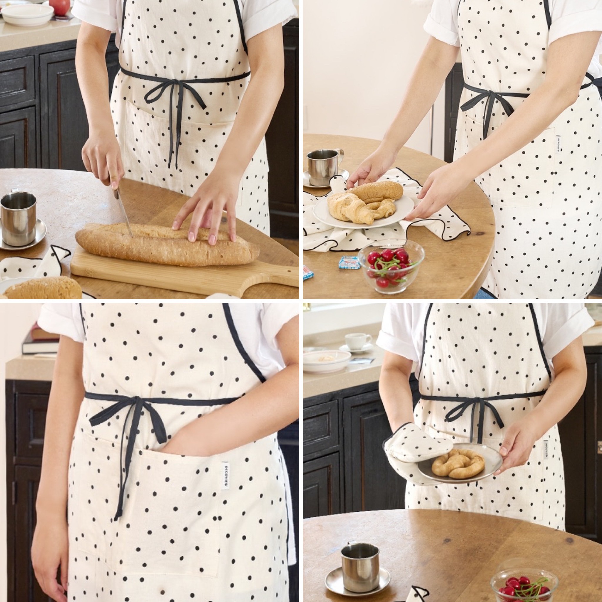 韓國 餐廚|可愛法式圓點系列- 廚房萬用布 隔熱手套 點點圍裙 面紙盒套|合法商家開立發票×奶油韓國代購×全館分期0利率