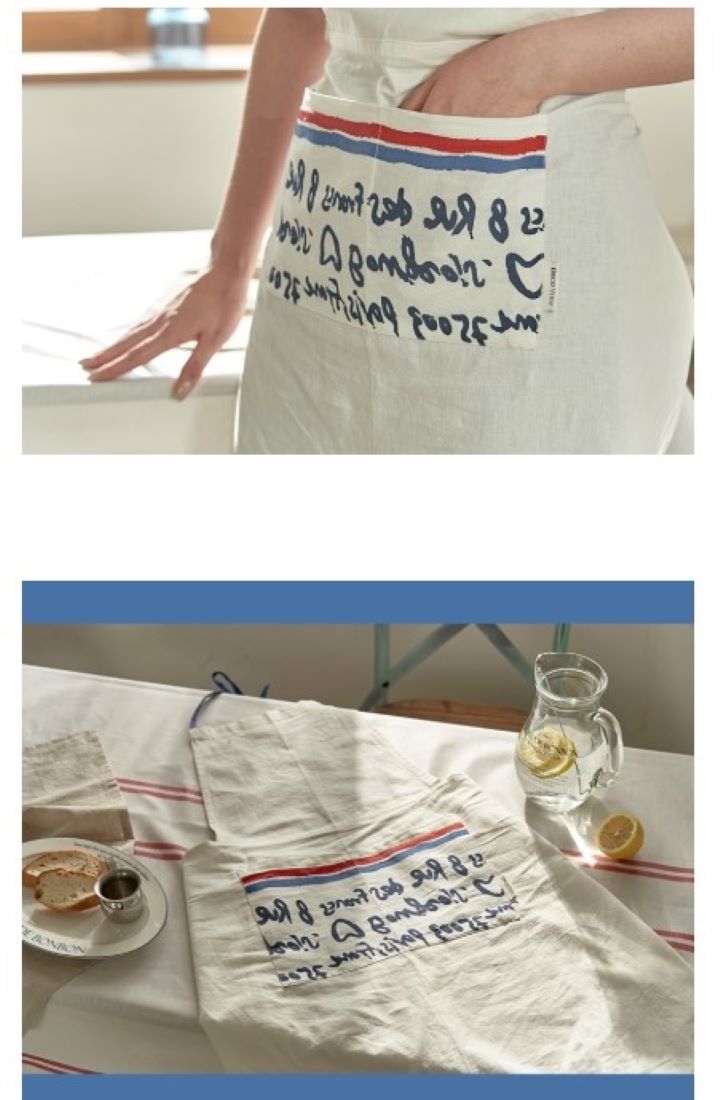 韓國 餐廚|好看的法式字母棉麻廚房圍裙 工作圍裙-合法店家開立發票-奶油代購