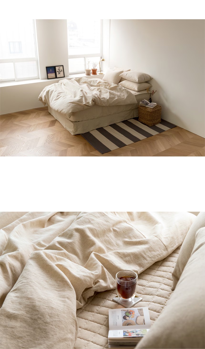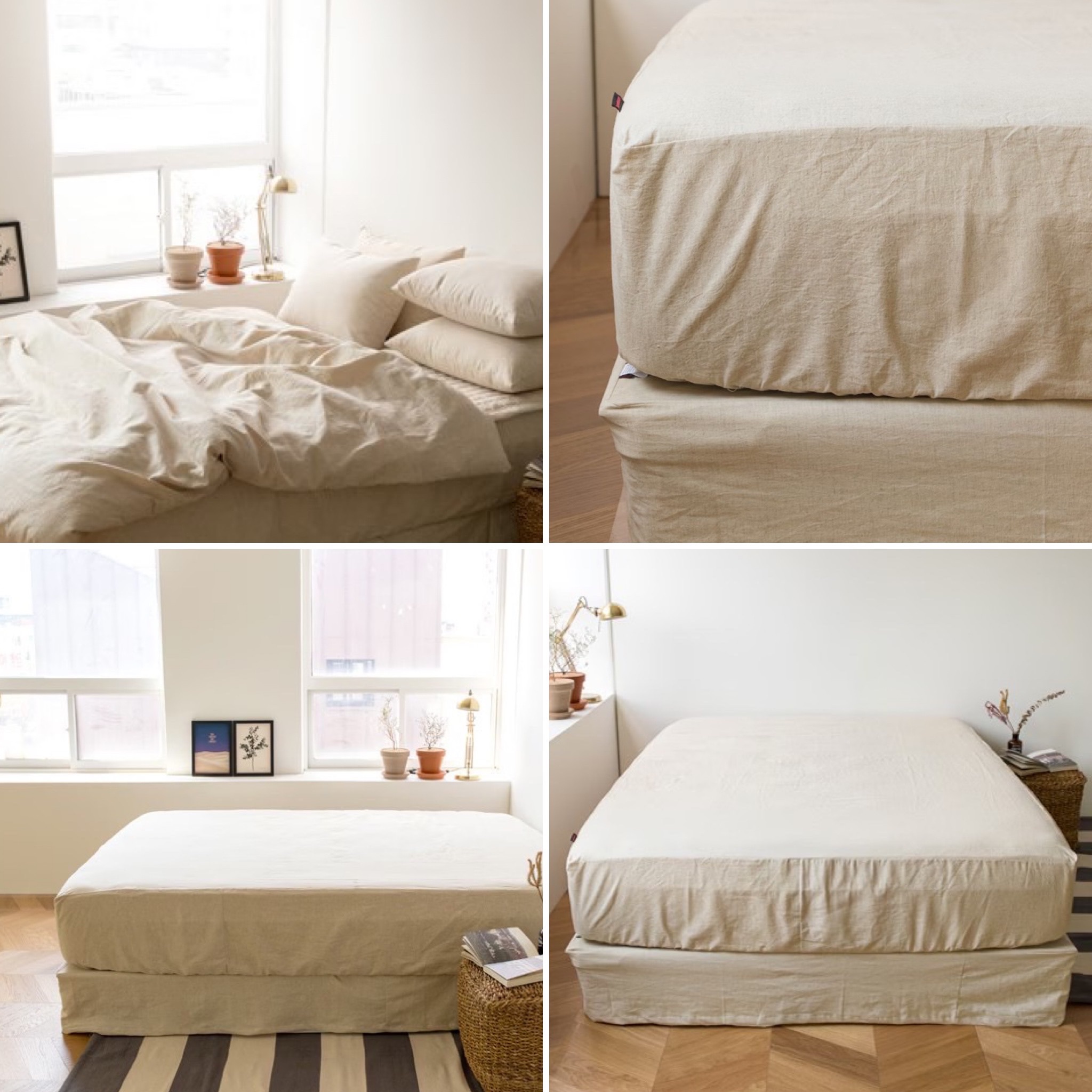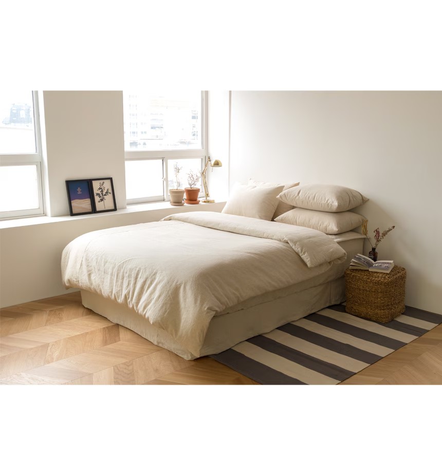 韓國 織品|天然米色亞麻素色床包 推薦給那些追求自然起皺質感的人|合法商家開立發票×奶油韓國代購×全館分期0利率